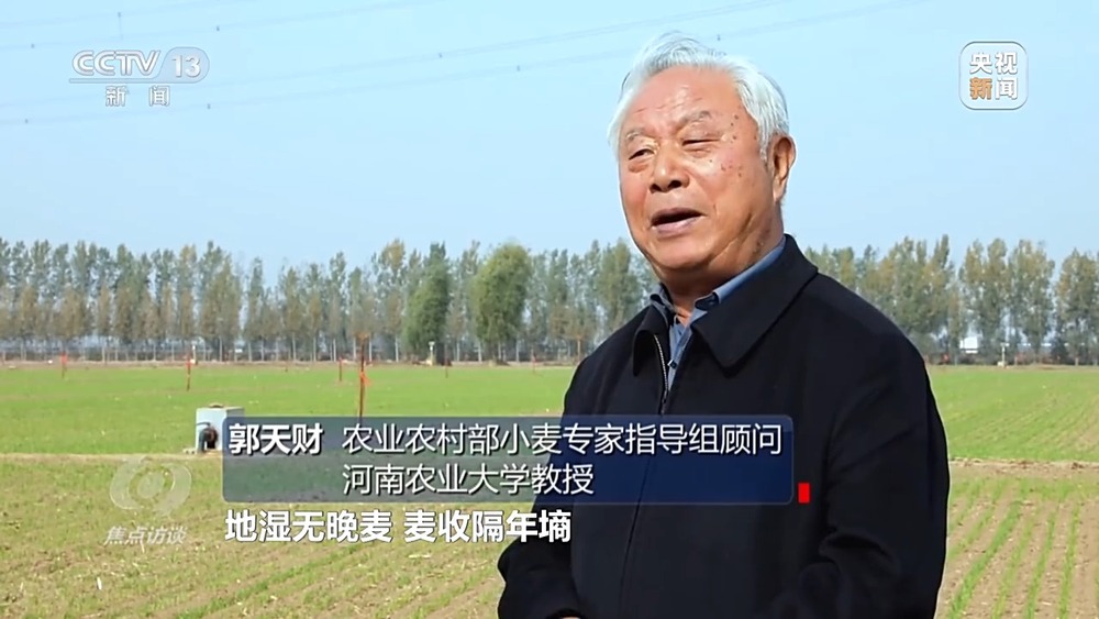 郭天财:小麦大面积晚播,但是雨水又补充了土壤墒情,河南有句农谚,地湿无晚麦,麦收隔年墒,麦种泥窝窝,来年吃馍馍。这就说明了底墒的重要性,根据我从事小麦研究50年的经验,哪一年的底墒好,第二年往往是丰收年。培育冬天壮苗,抓好春季和后期两个管理的关键时期,这样才可以实现小麦的丰产高效。